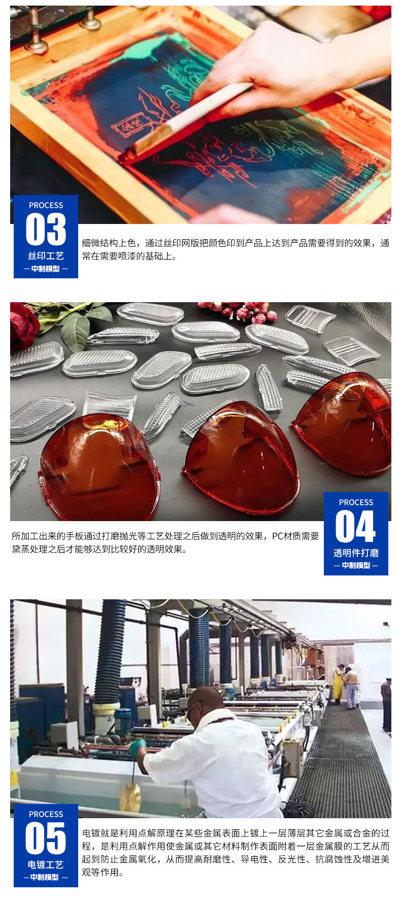 辅助工艺:去毛刺(提升表面光滑度 )、抛光(增强镜面效果 / 降低粗糙度 )、热处理(优化材料力学性能 )、表面涂层(如氮化、镀硬铬,提升耐磨性与防腐性 );质检采用三坐标测量、轮廓仪检测,确保尺寸与形位精度 。
